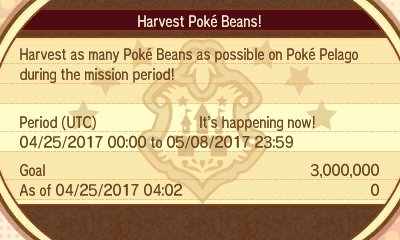 Pokemon Sun/Moon players will be tasked with harvesting Poke Beans from the Poke Pelago. Aside from that, we know that Pokemon Global Mission #5 begins on April 25. Stay tuned for more information.