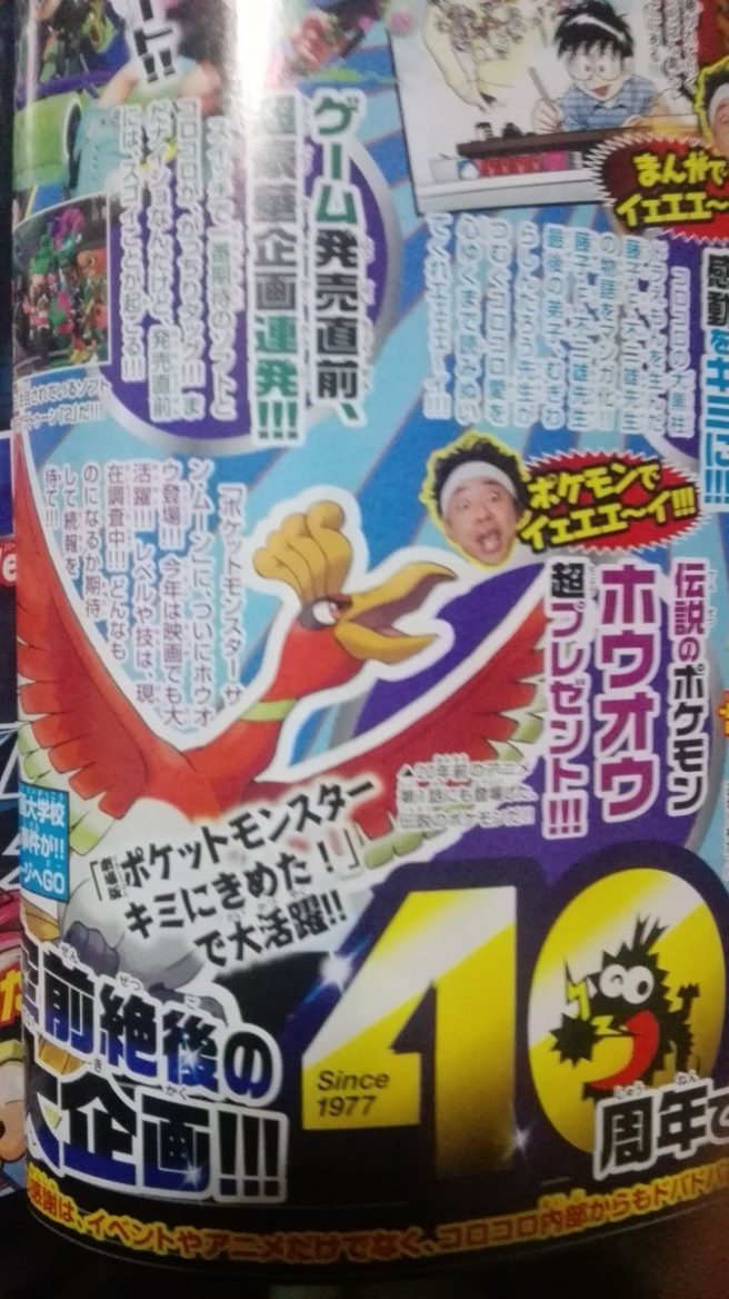 Original (4/13): The newest issue of CoroCoro magazine has started to leak, and it has revealed a new distribution coming to Pokemon Sun & Moon. Ho-Oh will be distributed in Japan later this year. Further details aren’t available at this point. It’s possible that this will be tied to the upcoming Pokemon movie in Summer in which Ho-Oh plays a major role, though we don’t know for sure yet.