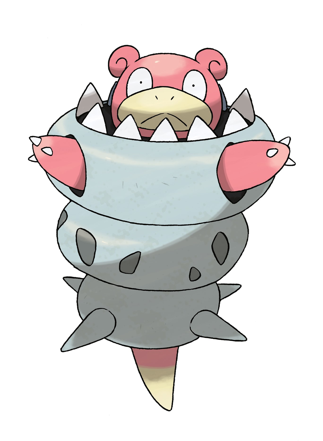 Slowbro, a Water- and Psychic-type Pokémon, is one of two evolved forms of Slowpoke, the other being Slowking. When Slowbro Mega Evolves into Mega Slowbro, its energy gathers in the Shellder clamped onto its tail. As a result, the hardness of its shell is boosted, making its armour incredibly strong. In battle, Mega Slowbro balances on its tail, wearing Shellder as an impenetrable armour over its body.