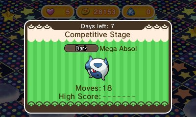 The Mega Absol stage is a competitive stage, with only the top players getting the better rewards. Absolite will be awarded to the top 50,000 players in Japan, 20,000 in North America, and 12,000 in Europe, with the top 5,000 Japan, 2,000 North America, and 1,200 Europe players getting a Mega Speedup as well. The top 80,000 players in Japan, 30,000 in North America, and 18,000 in Europe will get an Attack Power, and all participants will get a Distruption Delay. The competition runs until March 29th.