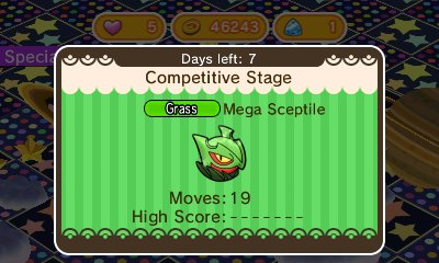 First up is the Mega Sceptile challenge, which will give players the chance to win some Sceptilite. The competition runs until April 12th, with players getting better rewards depending on how well they do. To get the Sceptilite, 3DS players will have to be one of the top 20,000 in the US, 12,000 in Europe, or 50,000 in Japan. The top 80,000 mobile players will also earn it. For 3DS, the top 2,000 US, 1,200 European, and 5,000 Japanese players will get a Raise Max Level, while the top 8,000 mobile players will get a Mega Speedup. Being in the top 30,000 in the US, 18,000 in Europe, 70,000 in Japan for the 3DS, or 120,000 on Mobile will earn you two Attack Powers. Everyone else will earn a Jewel.