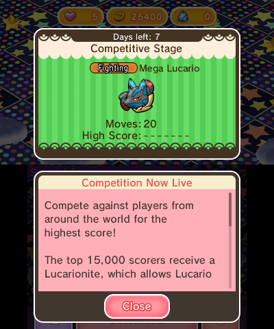 The Mega Lucario stage is back for the third time in Pokémon Shuffle and will grant you yet another chance at obtaining a Lucarionite for your Lucario, which cannot be obtained by normal means.