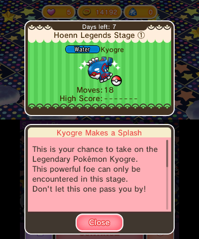 Kyogre is the next event Pokemon in Pokemon Shuffle that is back for a “rerun”. If you missed your chance to catch it the first time around, you can have another shot at it now. The event will run until July 31st.
