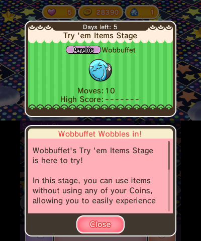 A new stage which allows you to catch Wobbuffet has now been added to Pokemon Shuffle. This new Wobbuffet stage is a little different from other events and challenges, however, as this special stage will let you try as many items as you see fit without the need to spend coins.