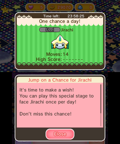 Hoenn’s star-like legendary, Jirachi, is now available for you to capture in Pokémon Shuffle! This special event will run until July 10th, and will only be playable once a day until then, so make your best moves and be strategic as possible if you want to try and obtain this legendary in the upcoming days!