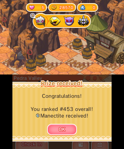 If you were one of the top 20k in Europe, 40k in North America, and 50k in Japan, you should be receiving the Manectite now. In addition to this, for those that were able to rank, players should also be receiving a Mega Start to go along with it. The top 3k in Europe, 6k in North America, and 15k in Japan will obtain a Mega Speedup as well as the aforementioned prizes. As usual, for those that participated but weren’t able to rank, you will still receive a Jewel for your efforts.
