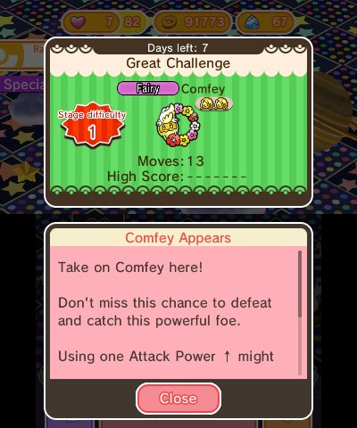 In this week of Pokemon Shuffle players will have a new Comfey stage. A new Pokemon Safari that includes Pikachu in Magikarp Costume, Gyarados Costume, Charizard Costume, Shiny Rayquaza Costume, surprised Pikachu and dizzy Pikachu. All of these will be available until February 13th. Repeat runs of Shaymin Land Forme, Shaymin Sky Forme, Dialga and Palkia have also begun.