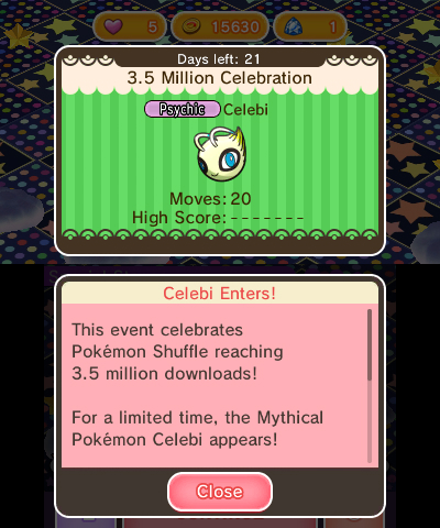 Celebi event now live on Pokémon Shuffle, celebrates 3.5 million downloads
