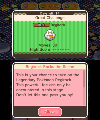 In addition to the Regirock event, 10 new main stages were also added to Pokemon Shuffle today. Download the latest update by Checking In to access them.