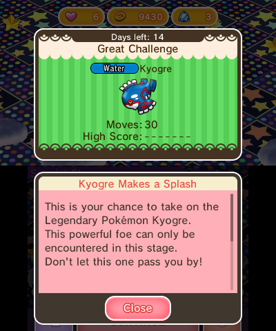Third generation legendary Kyogre is now available for capture in Pokémon Shuffle when you check in. This special event to catch Kyogre will last until March 23rd, so get it while there’s still time!