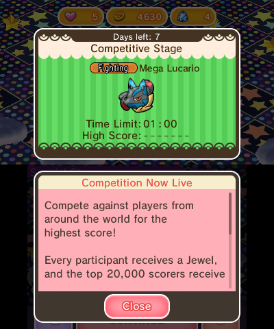 If you go to Check In on Pokémon Shuffle, you’ll be given the chance to face Mega Lucario. This one’s a little bit different, as once you defeat Mega Lucario, you’ll be awarded with the Lucarionite and a Jewel. There is one catch, however: Only the top 20,000 players in the west and 50,000 in Japan will be able to receive the Lucarionite for their Lucario (Lucario can be obtained through the special EX stages). As of this writing, we don’t know if the Lucarionite will be given by any other means, so Check In as soon as you can!
