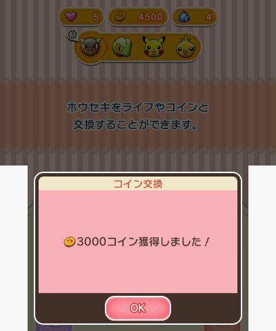 – Coins can be used to buy items to make stages easier, or Great Balls to make capture of Pokemon more likely.