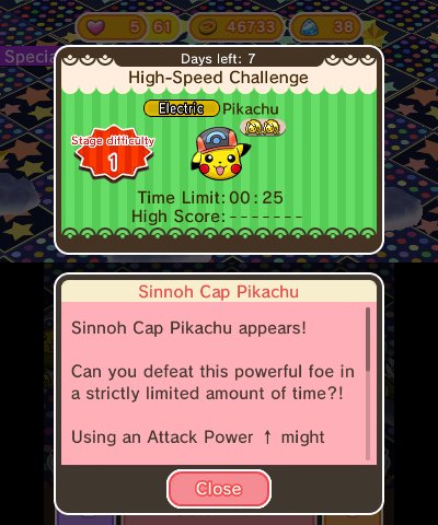Another update for Pokemon Shuffle is here. Firstly, a new Sinnoh Cap Pikachu special stage has begun and will run until June 27th. A Shiny Gyarados Costume Pikachu stage is also available now, but will be running til July 4th.