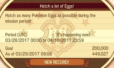 Pokemon Sun and Moon started its fifth Global Mission yesterday, tasking players with hatching eggs, and players have already hatched the requisite amount. In fact, players have hatched over 400,000 eggs, which accomplishes a secondary goal of the event. The event ends on April 10, so if you haven’t participated, you can dive in to get an easy 2000 FC.