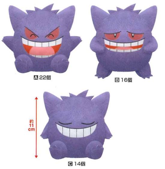 By the way, it’s also worth mentioning that Bounsweet (17cm) and Gengar (11cm) will be getting new plushies. We have a look at the Gengar set below.