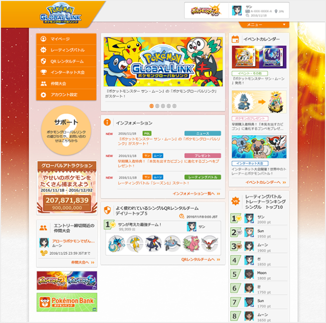 The Pokémon Global Link, the website that links to Pokémon Sun and Pokémon Moon, is due to be updated and reopened on Friday, November 18, in sync with the launch of Pokémon Sun and Pokémon Moon.