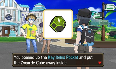 At some point, after battling them, Dexio and Sina provide the Zygarde Cube. You’ll be asked to find Zygarde Cores and Zygarde Cells in the Alola region. Cores and Cells can be found across the world.