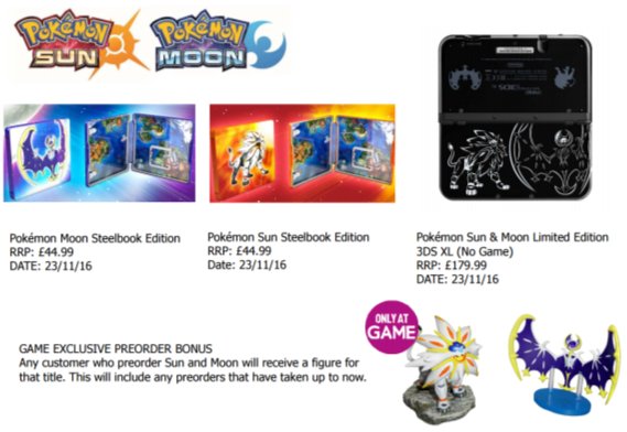 Original (7/15): Those who reserve Pokemon Sun or Pokemon Moon at GAME will receive a special bonus. The UK retailer will be handing out figures based on Solgaleo and Lunala. The figure provided is based on the version that you choose.