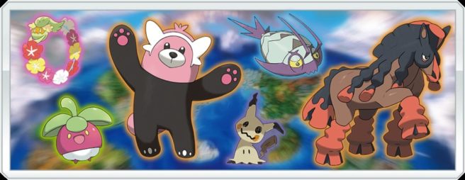 Pokemon Sun/Moon – footage of Bounsweet, Bewear, Comfey, Mudsdale, Mimikyu, Wimpod