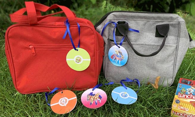 First up is a set of lunch bag name tags for 30 Platinum Points. These feature Grookey, Scorbunny, and Sobble as well as the Legendary Pokemon Zacian and Zamazenta. The name tags can be printed at home or at an office supply store (the latter of which Nintendo says may let you laminate them). With a hole puncher, you can create hole in the corner of the tag and tie it to the lunch bag with a ribbon or string.