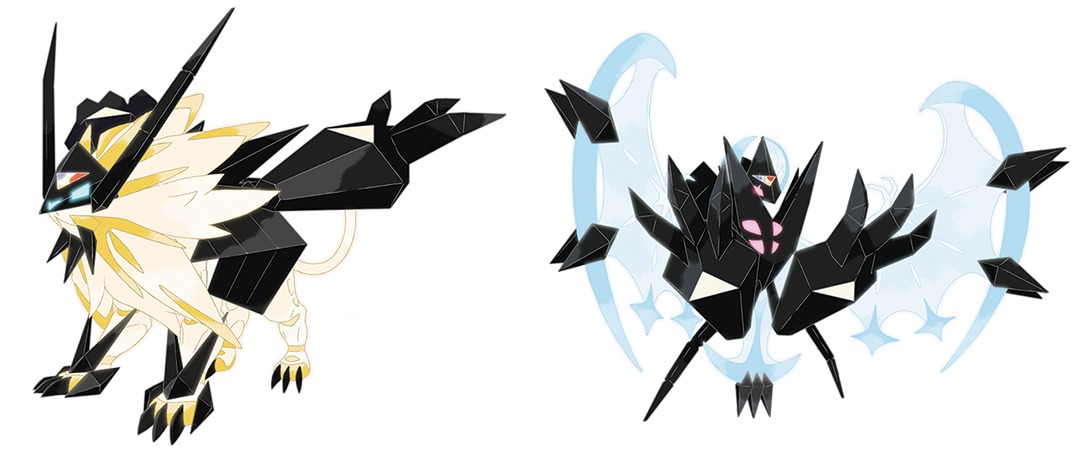 Pokemon Ultra Sun / Ultra Moon – art for new forms of Solgaleo / Lunala