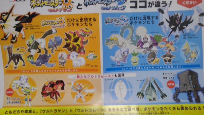 A new flyer has surfaced in Japan for Pokemon Ultra Sun and Pokemon Ultra Moon. It confirms the return of exclusive Pokemon in each version, with the set unchanged from the original games last year.