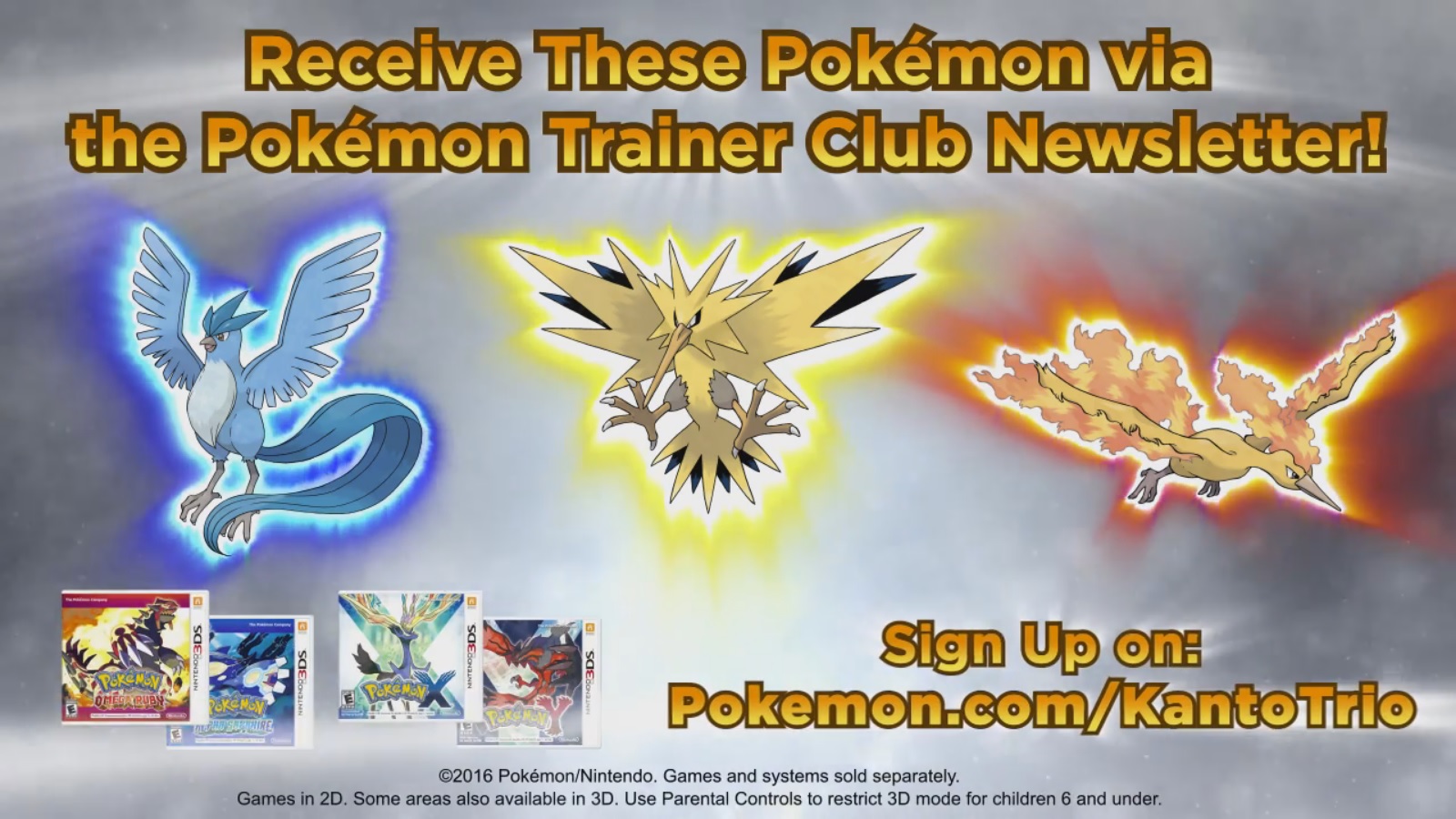 If you’re subscribed to the Pokemon Trainer Club newsletter, you should keep an eye out on your inbox for a special treat. Codes will be going out for Articuno, Zapdos, and Moltres. These can be obtained in Pokemon Omega Ruby, Alpha Sapphire, X, and Y. They’ll each come with a Hidden Ability, marking the first time you can get these Pokemon with this trait.