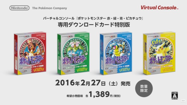 Pokemon Red, Blue, and Yellow 3DS Virtual Console launch trailers
