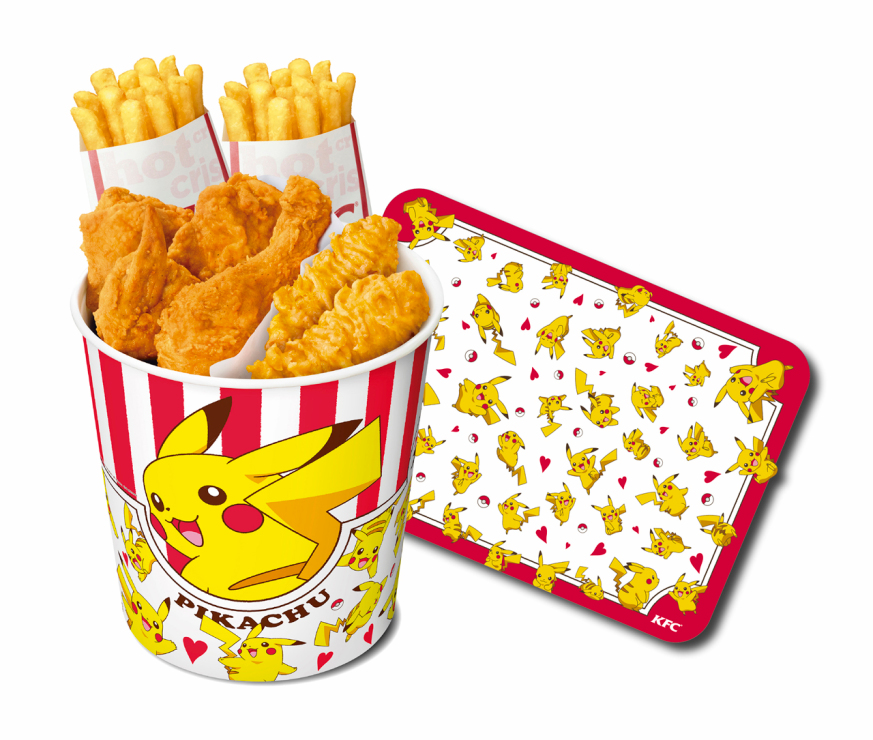 Finally, on April 21, KFC locations in Japan will offer a specially marked bucket featuring four pieces of the Colonel’s crispy fried chicken, fries and some Crispy Strips, and a limited-edition Pikachu-adorned placemat. This will cost 1,890 yen.