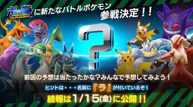 Next week, Bandai Namco will be pulling back the curtain of another fighter on the way to Pokken Tournament. The announcement – which will likely come with a trailer – will be made on January 15. Only one clue has been shared: the Japanese name of the Pokemon has a letter ? (ra) in it. We’ll be hearing about another support Pokemon as well.