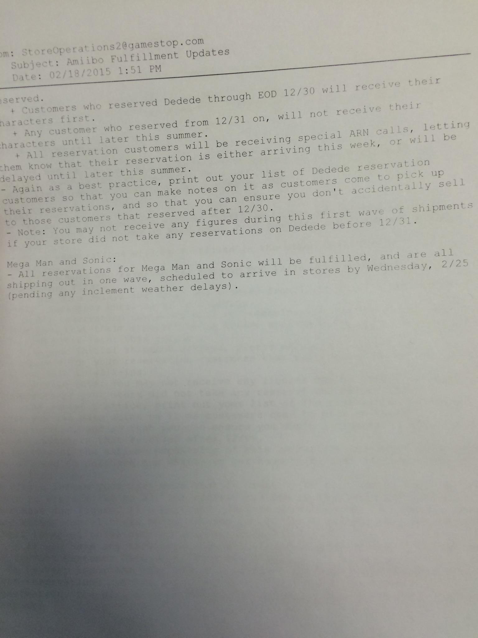 Have you pre-ordered an Ike or King Dedede amiibo at GameStop? Then you’ll probably be interested in hearing the latest update from the retailer, via a memo obtained by Destructoid.