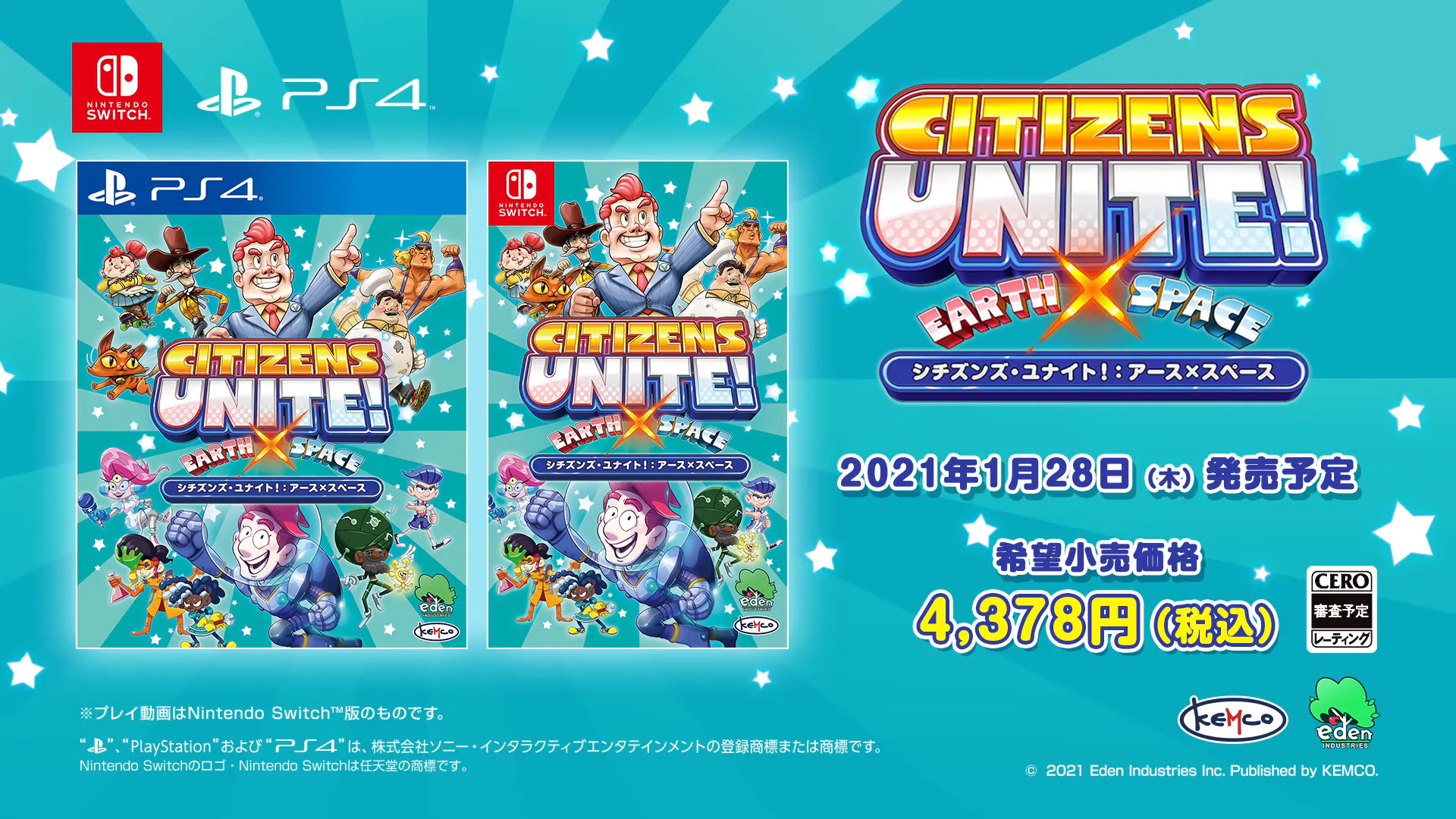 Kemco and Eden Industries will be bringing Citizens Unite!: Earth x Space to Switch on January 28, 2021.