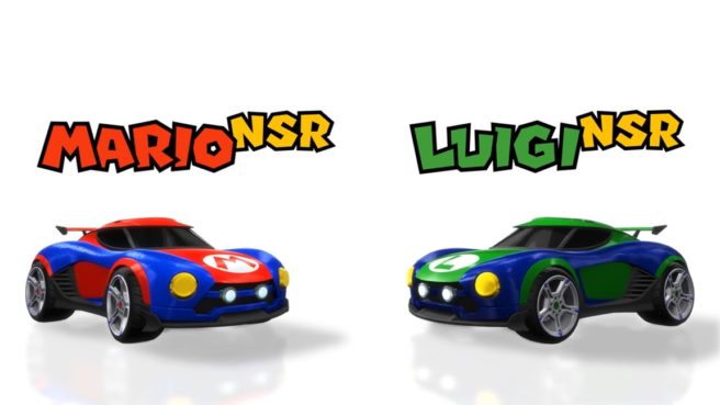 Players will be able to ride in vehicles based around Mario, Luigi, and Samus. The Mario and Luigi cars are the same but for a different predominant color and logo, and the one you get depends on the Rocket League team you’re on. You’ll be Mario on the Orange team, and Luigi on the Blue team.