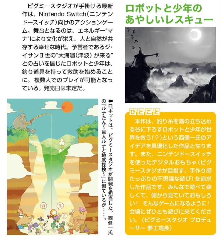 The title, which is being led by Pygmy Studio, was one of the first games we heard about for the console as it was announced in May 2017. We later learned that original Chibi-Robo director Kenichi Nishi is involved. Years have gone by without any news.