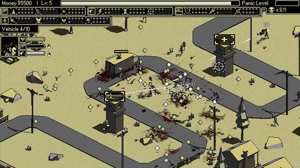 Road Defense: Outsiders features a mix of roguelike and tower defense gameplay. Players will upgrade towers and skills throughout the experience.