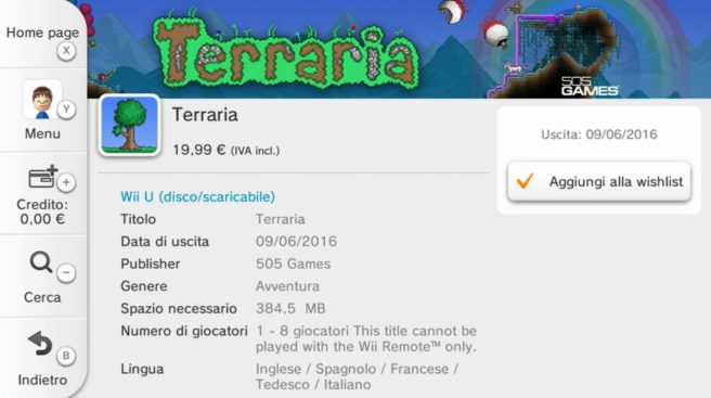 Terraria Wii U hitting the European Wii U eShop on June 9