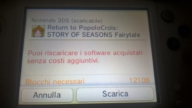 Return to PopoloCrois: A Story of Seasons Fairytale will take up 12,108 blocks on your SD card. For those that are curious, that’s nearly 1.5GB.
