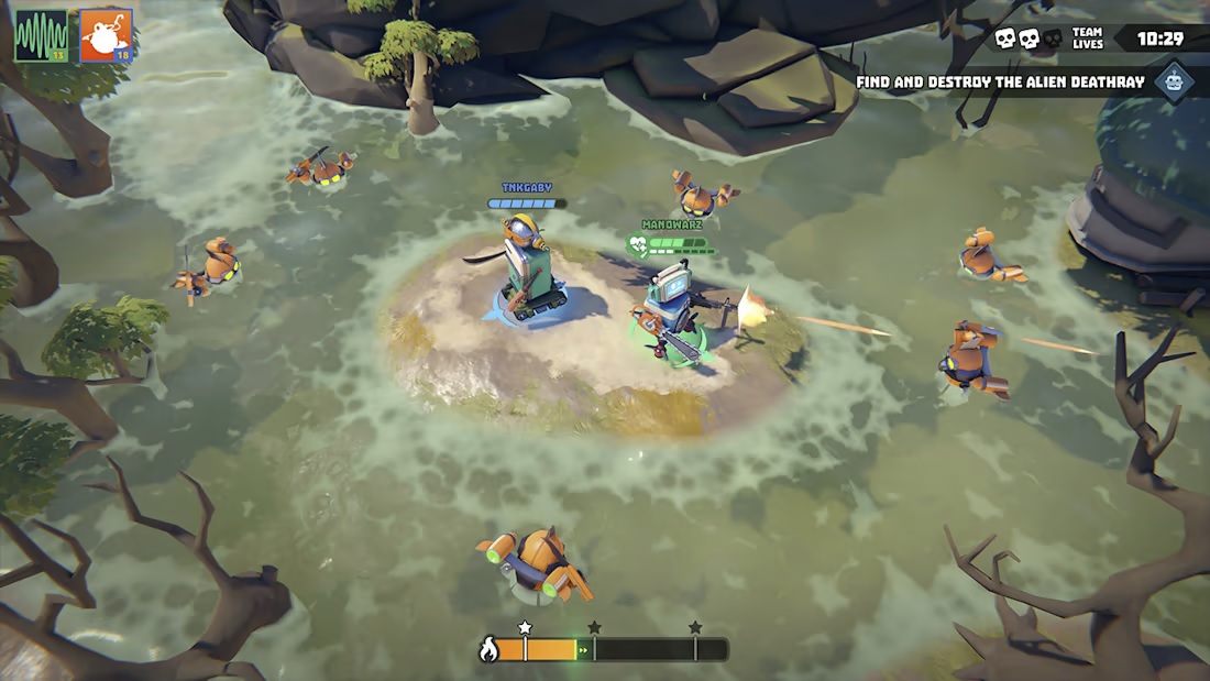 Robo Revenge Squad has players fighting alien robots using Robos made of everyday objects like disco balls and baseball bats. Four people can play together at once via co-op.
