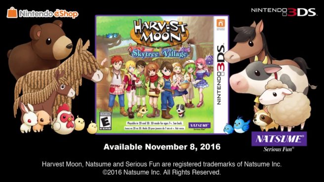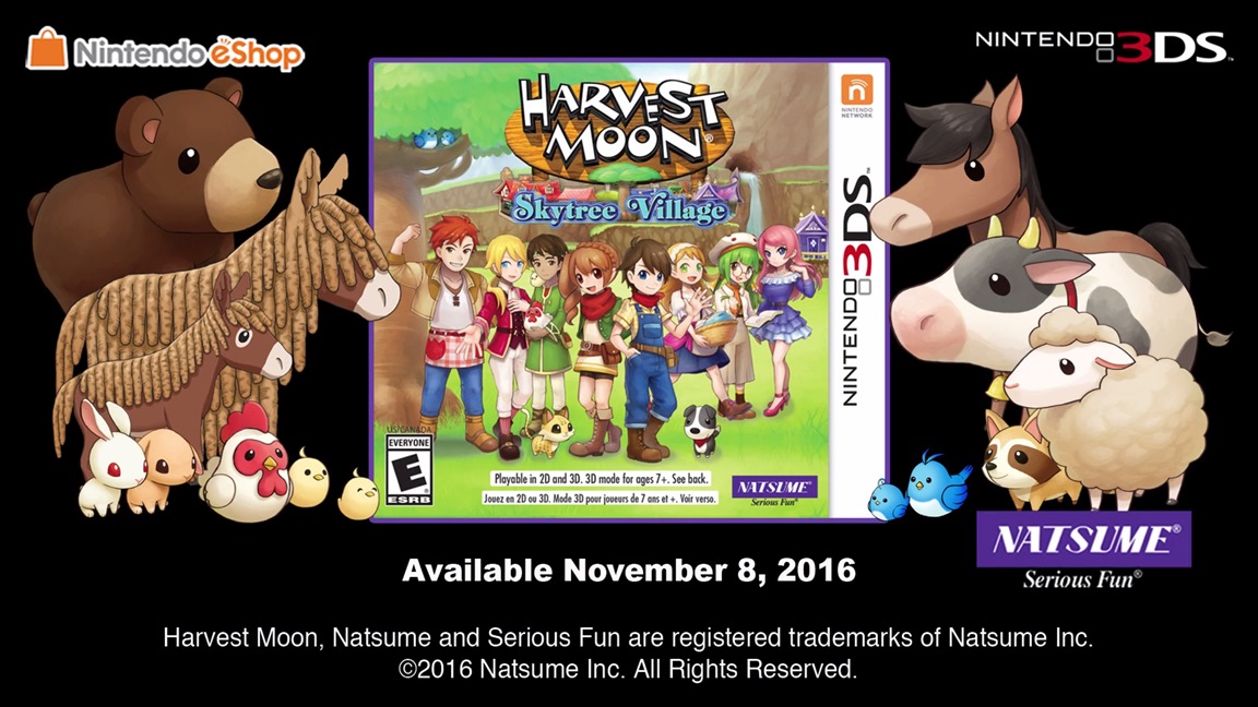 Natsume has announced that Harvest Moon: Skytree Village will launch in North America on November 8. In Europe, Rising Star Games will publish the 3DS title next spring.