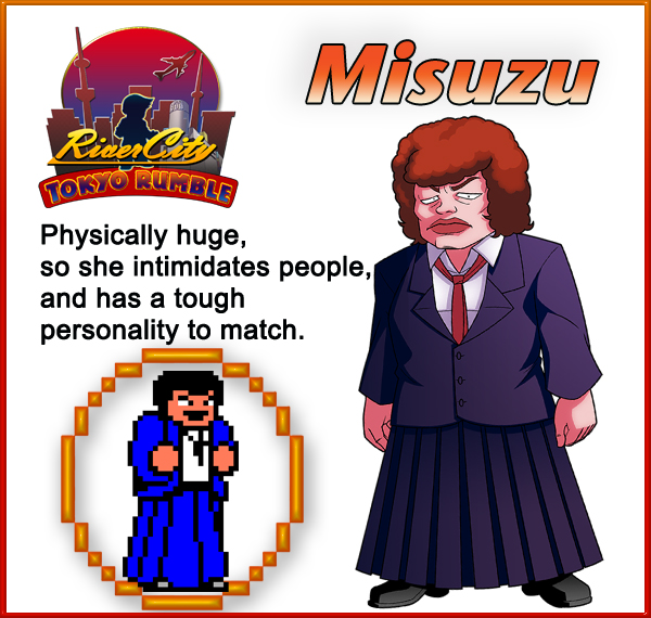 Original: Natsume has sent out some new assets for River City: Tokyo Rumble detailing some of the game’s characters. Find art below, along with their descriptions.