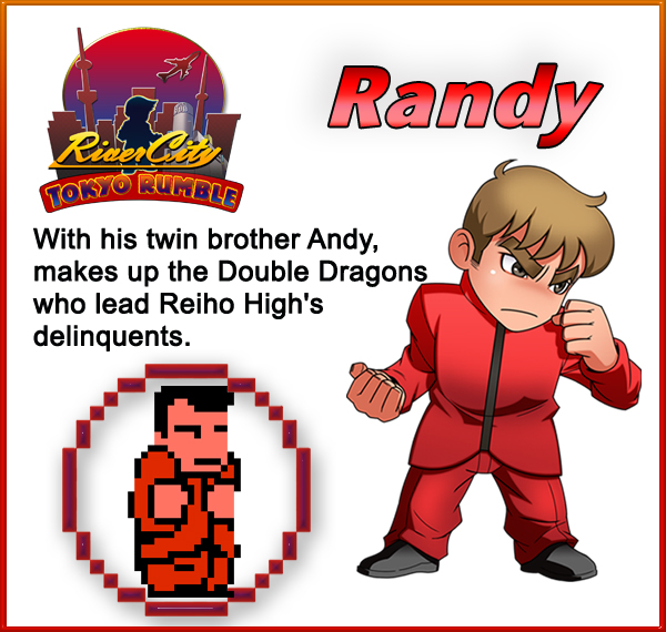 RANDY – Returning from River City Ransom, twins Randy and Andy make up the Double Dragons!