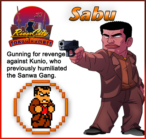 SABU – Gunning for revenge against Kunio, who previously humiliated the Sanwa Gang. Fans of Renegade should remember this bad guy!