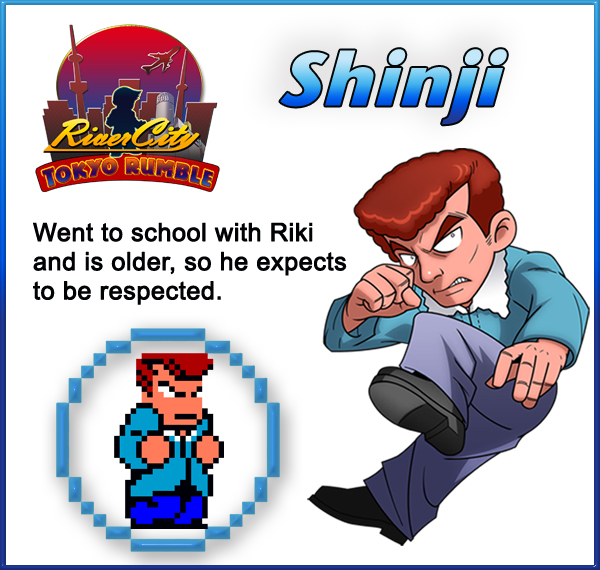 SHINJI – Shinji went to school with Riki and is older, so he expects to be respected. He demands respect from his lowerclassmen, with fists if necessary!