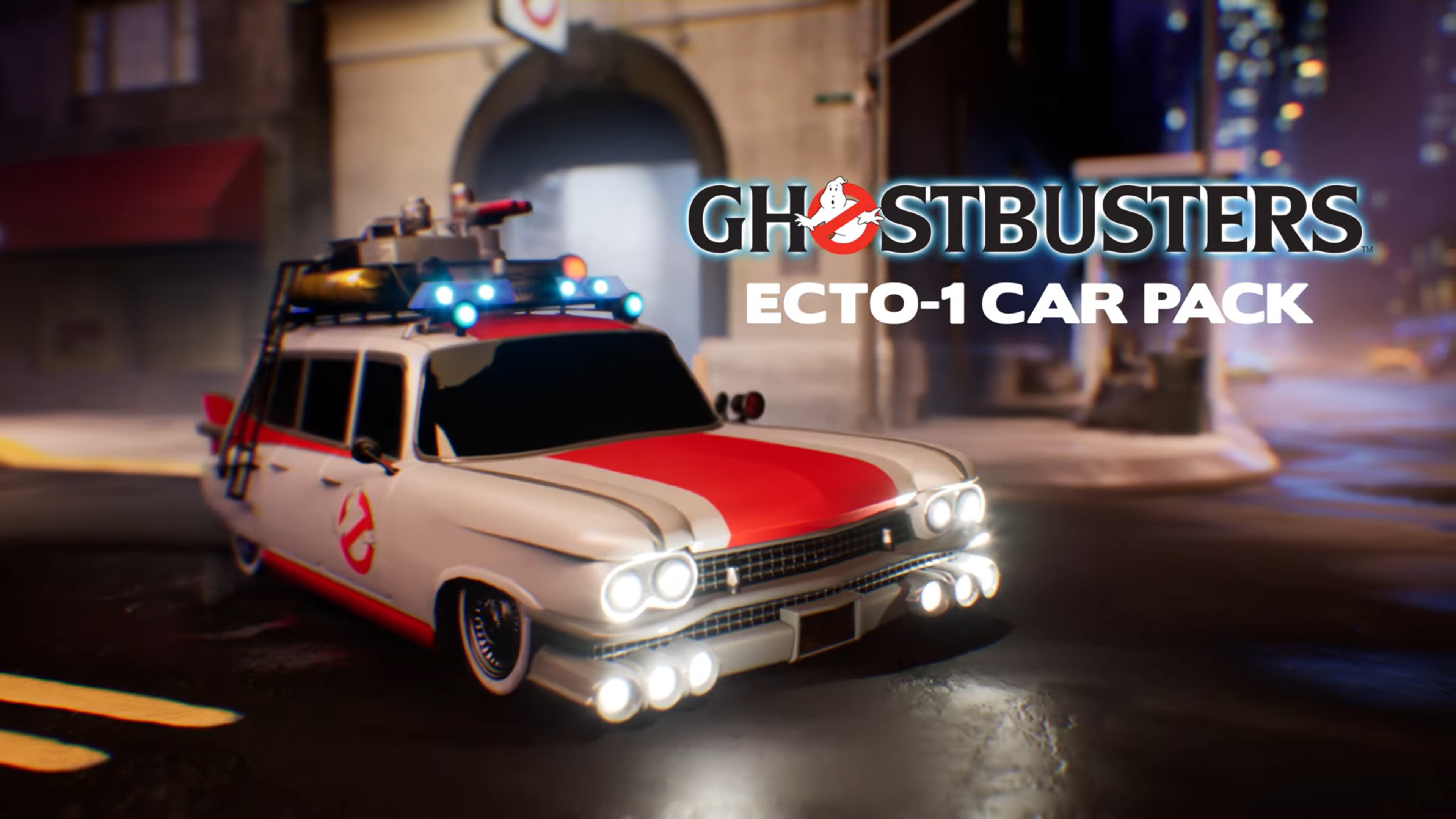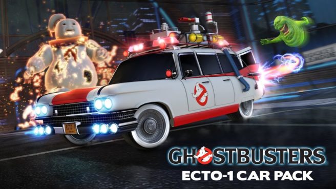 The Ghostbusters Ecto-1 Car Pack includes the Ecto-1 Battle-Car, Ecto-1 Wheels, Slimer Topper, Proton Pack Boost, Ghostbusters Avatar Border and Player Banner, and the Stay Puft Goal Explosion.