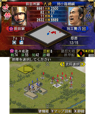 Nobunaga’s Ambition DS is a remake of the eighth title in the series, Nobunaga’s Ambition: Tales of the Storms. It’ll come with two new scenarios, 100 additional commanders, an easier-to-play interface, and eight more save slots. Making matters more confusing, the 3DS version will be called “Nobunaga’s Ambition 2”.