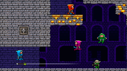 Roving Rogue, an old-school 2D platformer featuring multiplayer support for up to four players, is also in the works. The game starts unexpectedly after defeating the final boss. Players will need to guide their characters to the exit through a collapsing castle full of lava.