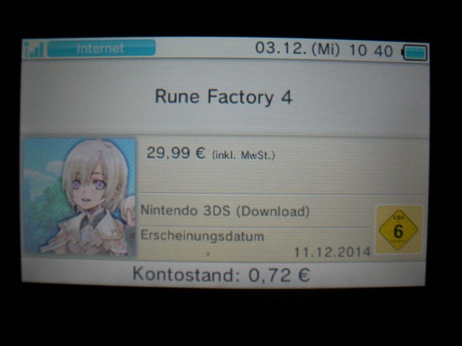 It’s been a long wait for Rune Factory 4 in Europe, but the game appears to be arriving next week. The 3DS eShop currently lists a December 11 release date – that’d be next Thursday. It’s technically not confirmed, though I’d say that date is very likely at the moment.