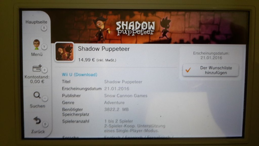 A pair of titles have been confirmed for release in Europe on January 21. Shadow Puppeteer will be out on Wii U, whereas RV-7: My Drone will be on 3DS. I would expect that both of these will be available in North America around the same time.