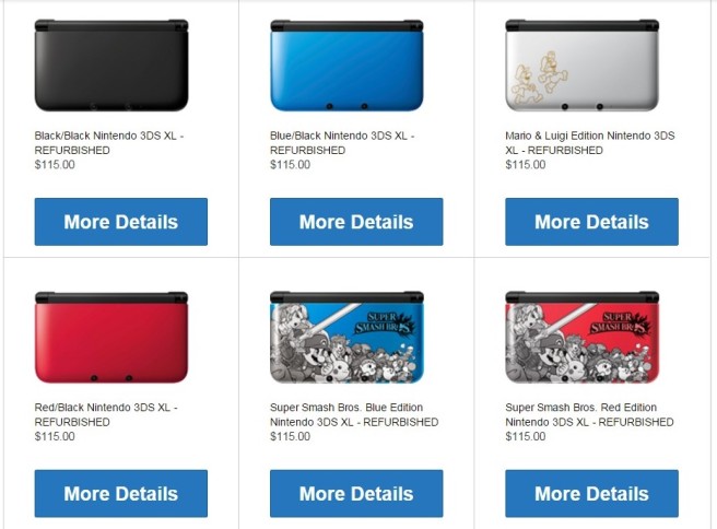 Nintendo online store selling refurbished 3DS XL systems for $115