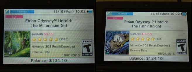 Two Etrian Odyssey games are now on sale on the North American 3DS eShop. ?Etrian Odyssey Untold: The Millennium Girl can be had for just $9.99. Additionally, Etrian Odyssey 2 Untold: The Fafnir Knight is $10 off and can be purchased for $39.99. Both prices will be live until November 30 at 11:59 PM ET / 8:59 PM PT.